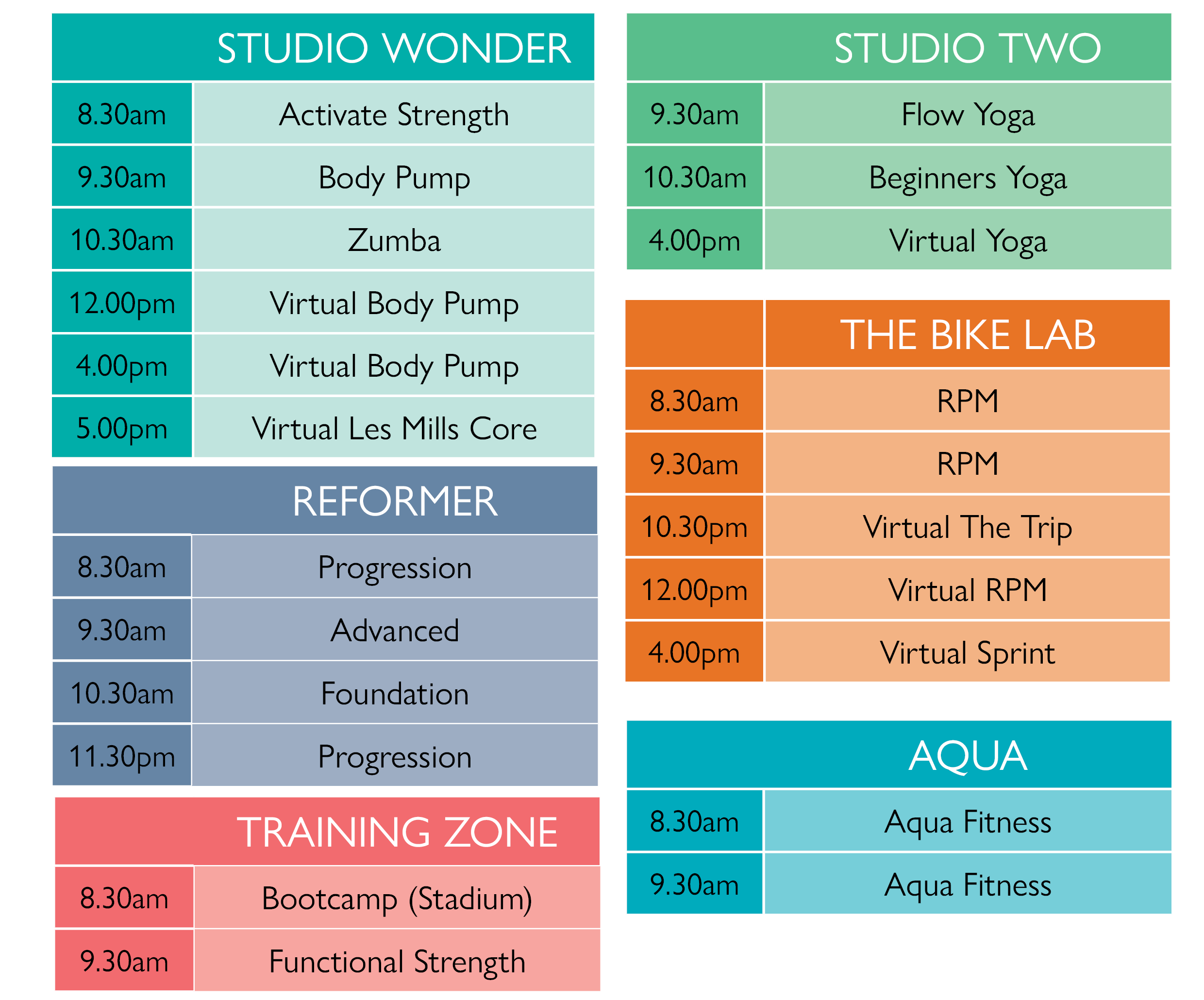 Group Exercise Timetable