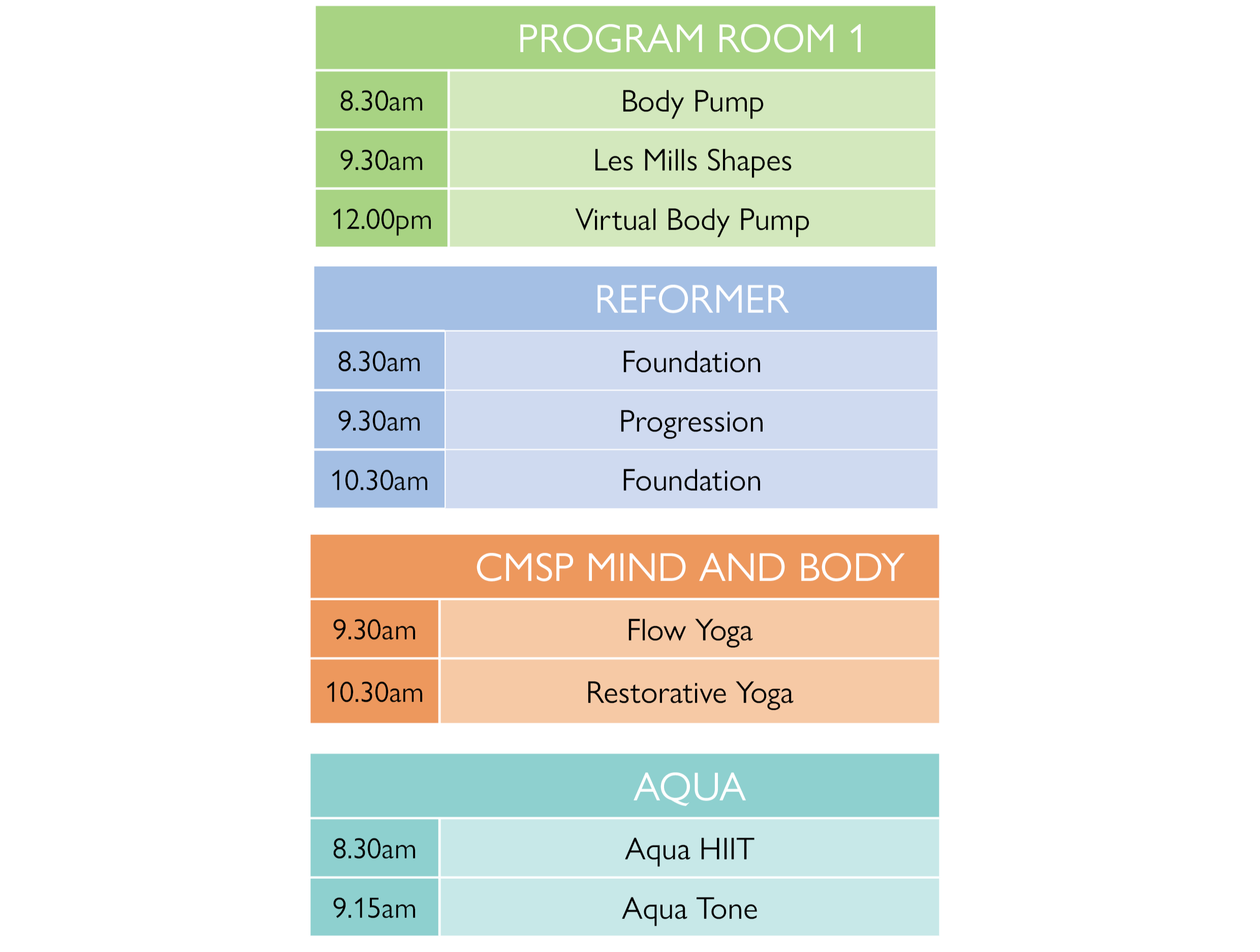 Group Exercise Timetable